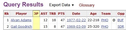 據(jù)統(tǒng)計,太陽隊史僅有3名球員打出過至少47分6板11助的數(shù)據(jù),前兩人分別是阿爾萬-亞當(dāng)斯和蓋爾-古德里奇。