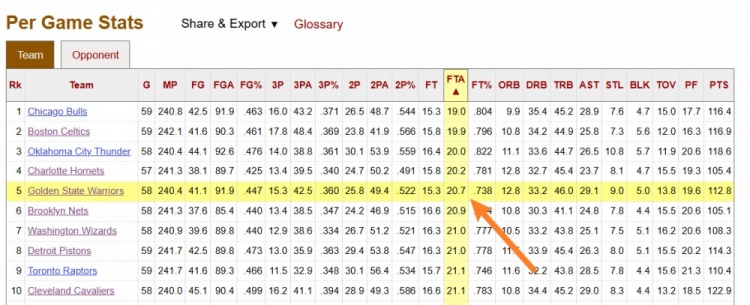 本場比賽之前,勇士本賽季場均20.7次罰球,聯盟第5少。