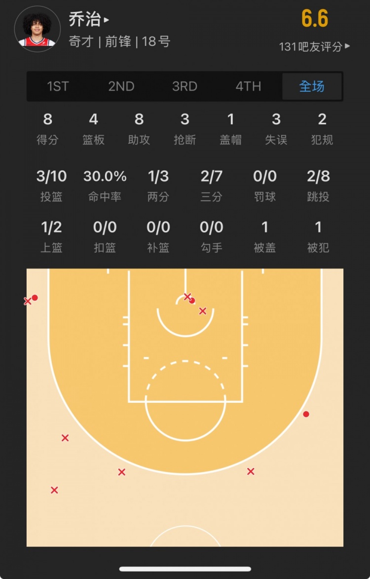 奇才24號(hào)秀 凱肖恩-喬治 登場(chǎng)34.9分鐘