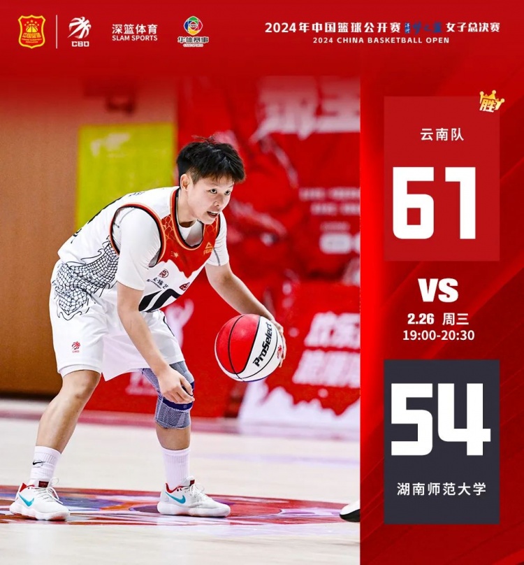 云南隊和湖南師范大學(xué)在本輪相遇,實力相當?shù)膬芍蜿牬虻孟鄬δz著。上半場,10平后,湖南師范大學(xué)30號趙詩雨兩分命中,隨后6號沈思榆外線再貢獻一個三分球,15-10湖南師范大學(xué)超出。云南隊依靠6號羅菲和14號娜漢的進攻緊咬比分。半場結(jié)束云南隊落后湖南師范大學(xué)1分。下半場,兩隊依舊難解難分。在云南隊幾次外線得分實現(xiàn)反超,14號娜漢外投內(nèi)突,連續(xù)得分,云南隊士氣大漲,最終云南隊61-54戰(zhàn)勝湖南師范大學(xué)。