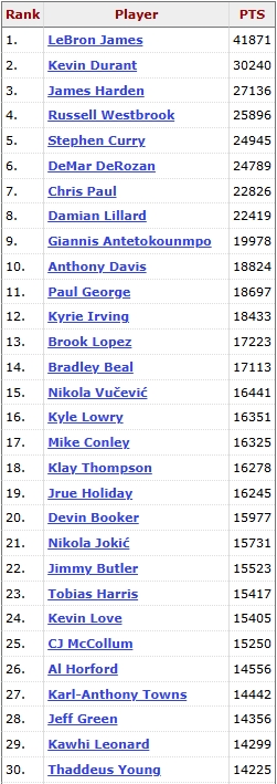 各位吧友們認(rèn)為,誰(shuí)將成為現(xiàn)役第10位20000分先生?現(xiàn)役得分Top30里,誰(shuí)還有望達(dá)成該成就?