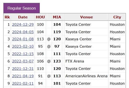 這樣一來,火箭結束了自己對熱火的常規(guī)賽9連敗,具體如下: