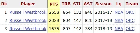 單賽季達(dá)成至少800籃板650助攻110搶斷的球員:約基奇、威少