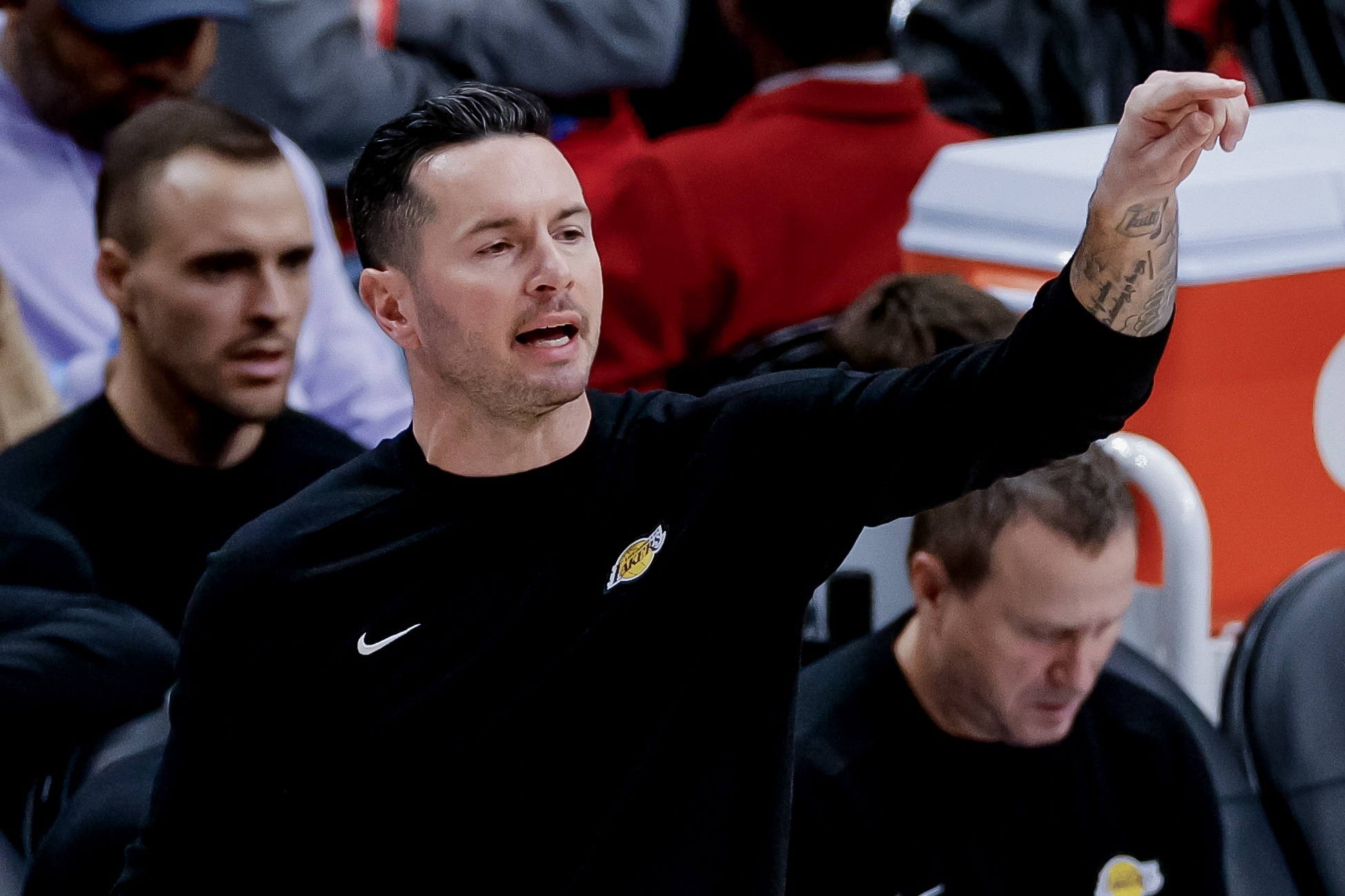 具體的陣容選擇還有待觀察。例如,讓海斯和賈里德-范德比爾特一起上場(chǎng)的決定似乎有點(diǎn)奇怪,因?yàn)樗麄兪呛岁?duì)核心輪換陣容中的兩名非射手球員。但這里有一個(gè)明確的邏輯。在賽季開始前,雷迪克曾表示——哪怕只是開玩笑——他希望湖人隊(duì)每場(chǎng)比賽投50個(gè)三分球。很明顯,這并沒有發(fā)生。只有掘金隊(duì)、猛龍隊(duì)和快船隊(duì)比湖人隊(duì)投得更少。但在周二對(duì)陣爵士隊(duì)的比賽中,湖人隊(duì)出手了42個(gè)三分球,追平了他們本賽季三分球出手次數(shù)第四高的紀(jì)錄。
