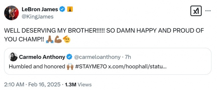安東尼入選名人堂最終候選名單!詹姆斯:實(shí)至名歸 為你感到驕傲