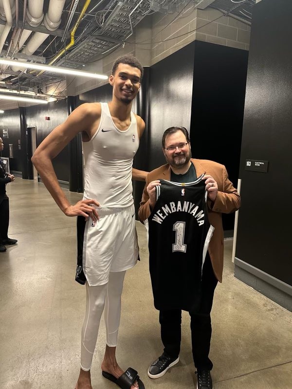 “對(duì)于那些好奇的人,我上個(gè)月確實(shí)在文班亞馬來(lái)猶他州的時(shí)候看到了他打球!比賽結(jié)束后,他還抽空和我們見(jiàn)了面,就像大家說(shuō)的那樣,他既親切又善于表達(dá)。(而且,看他打球真是太棒了。)真是個(gè)有風(fēng)度的人啊。@文班亞馬”