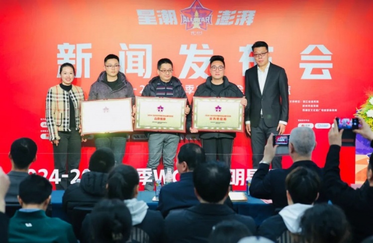 2025年2月17日,2024-2025賽季W(wǎng)CBA全明星周末官方新聞發(fā)布會在承辦城市浙江杭州舉行。中國籃球協(xié)會副主席徐濟(jì)成,浙江省籃球協(xié)會主席趙克,浙江省體育局體育訓(xùn)練處處長唐萬里,浙江省黃龍體育中心黨委書記、主任王振璋,浙江省籃球協(xié)會副主席、秘書長王志剛,浙江稠州職業(yè)籃球俱樂部總經(jīng)理方俊,江蘇南鋼隊員許晨妍、浙江稠州銀行隊員王佳琦以及贊助商代表出席了發(fā)布會。