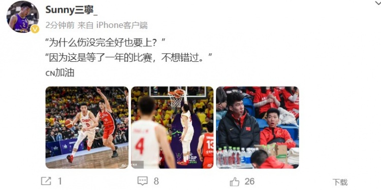 今日,廖三寧更博:“為什么傷沒(méi)完全好也要上?因?yàn)檫@是等了一年的比賽,不想錯(cuò)過(guò)。加油?!?/p>