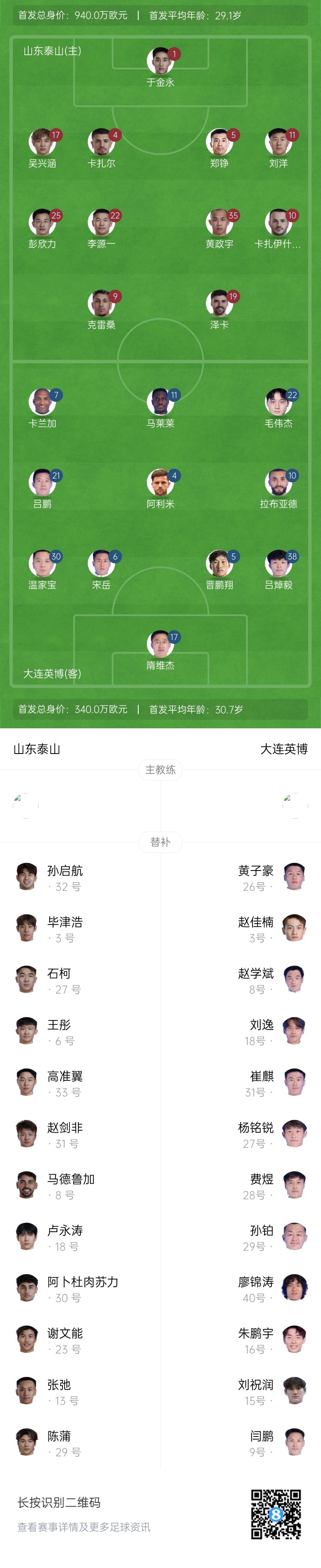 19歲國青小將毛偉杰進入大連英博戰(zhàn)泰山首發(fā),將迎中超首秀