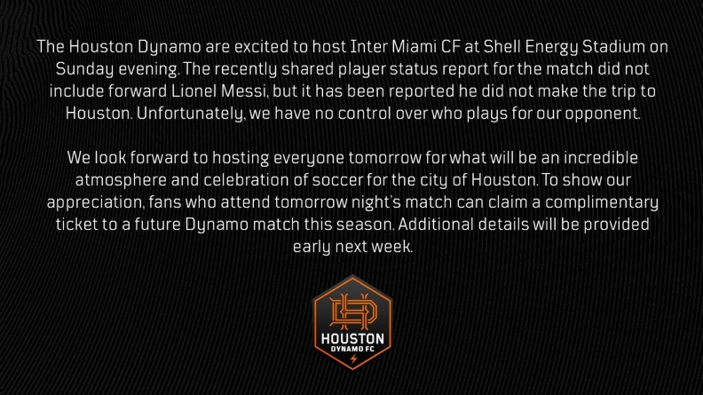 休斯頓迪納摩俱樂(lè)部很高興能在周日晚上在主場(chǎng)迎戰(zhàn)邁阿密?chē)?guó)際俱樂(lè)部。最近的比賽球員狀態(tài)報(bào)告中沒(méi)有梅西,據(jù)報(bào)道稱(chēng)他沒(méi)有前往休斯頓。