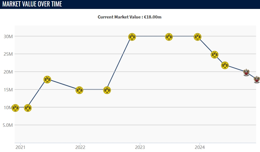 穆科科在2020/21賽季首次進(jìn)入多特一線隊(duì),自那之后,穆科科在多特各項(xiàng)賽事出戰(zhàn)99場(chǎng),貢獻(xiàn)18球8助攻。