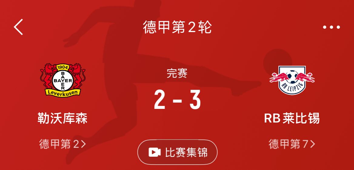 大型翻車現場!勒沃庫森德甲23輪不敗被終結,上次輸是半年前