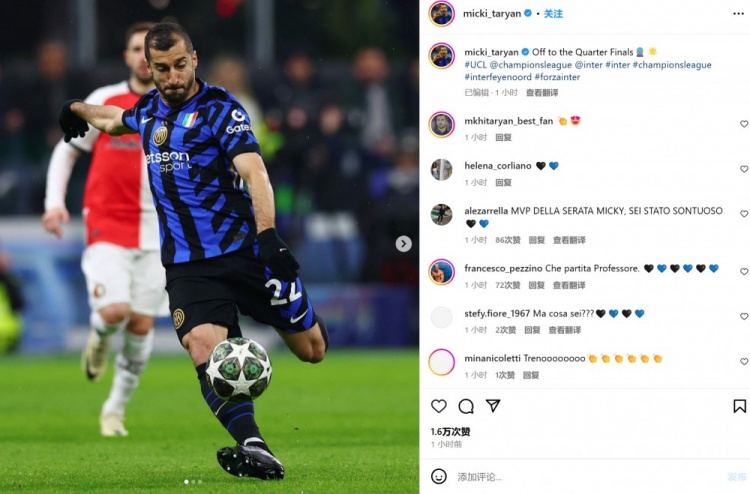 3月12日訊 國(guó)米在本輪歐冠主場(chǎng)2-1再次擊敗費(fèi)耶諾德,他們將在歐冠八強(qiáng)戰(zhàn)和拜仁相遇。隊(duì)內(nèi)多位大將也通過(guò)社媒曬照慶祝晉級(jí)。