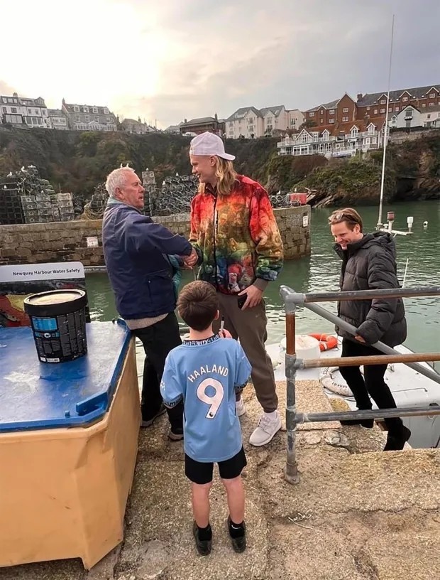 在休息時間,哈蘭德前往距離曼徹斯特家中約315英里的康沃爾紐基進(jìn)行海釣。盡管哈蘭德沒有在現(xiàn)場逗留太長時間,但他仍抽空與球迷合影,甚至為一位曼城球迷在球衣上簽名。