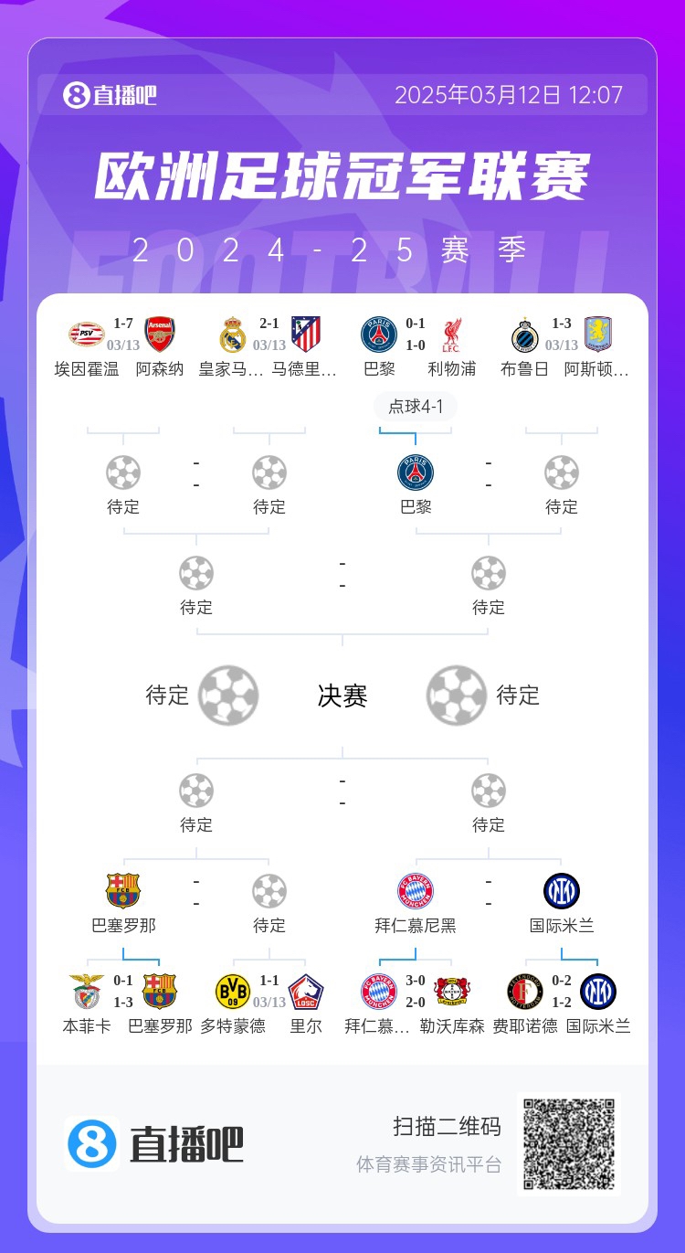 歐冠1/8決賽次回合明天再戰(zhàn),將決出最后4個(gè)晉級(jí)名額。焦點(diǎn)戰(zhàn)皇馬客戰(zhàn)馬競(jìng),姆巴佩、維尼修斯、小蜘蛛們會(huì)交出怎樣的成績單?