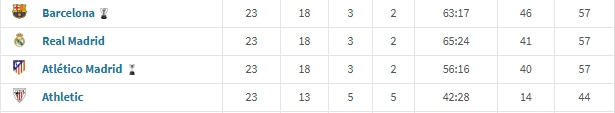 02月10日訊 本賽季西甲23輪戰(zhàn)罷,前三球隊(duì)分別是皇馬馬競(jìng)巴薩,三隊(duì)的分差最多只有2分。