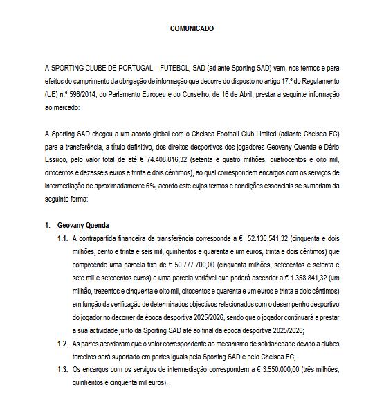 葡體與切爾西就球員昆達和埃蘇戈的永久轉(zhuǎn)會達成全面協(xié)議,總金額為74408816.32歐元(約7441萬歐),其中包括約6%的中介服務(wù)費用。