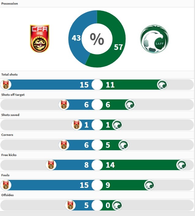 第一回合國足有人數(shù)+主場+先進球的優(yōu)勢,卻因指揮問題導(dǎo)致被對手逆轉(zhuǎn)。如果那會就有塞爾吉尼奧的運籌帷幄,估計會好很多??纯丛轿粩?shù)字的對比也知道,國足輸?shù)牡拇_很可惜