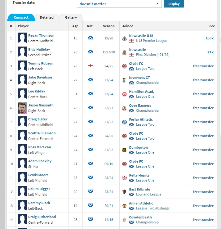 因?yàn)?,他們曾長期以業(yè)余球隊(duì)身份參加蘇格蘭聯(lián)賽,陣中沒有任何職業(yè)球員,非常傳奇。所以,他們的德轉(zhuǎn)歷史售出球員頁面是非常特別的(圖3),幾乎都是自由轉(zhuǎn)會,球隊(duì)收不到任何轉(zhuǎn)會費(fèi),好球員會被職業(yè)隊(duì)直接簽走。