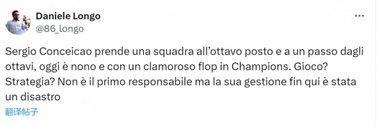 隆戈寫道:“孔塞桑接手了一支排名聯(lián)賽第8名,并且?guī)缀鯐x級歐冠16強的球隊,如今球隊排名聯(lián)賽第9名,歐冠慘淡出局。比賽風格?戰(zhàn)術(shù)策略?他不是首要責任人,但到目前為止,他的執(zhí)教是一場災(zāi)難?!?/p>