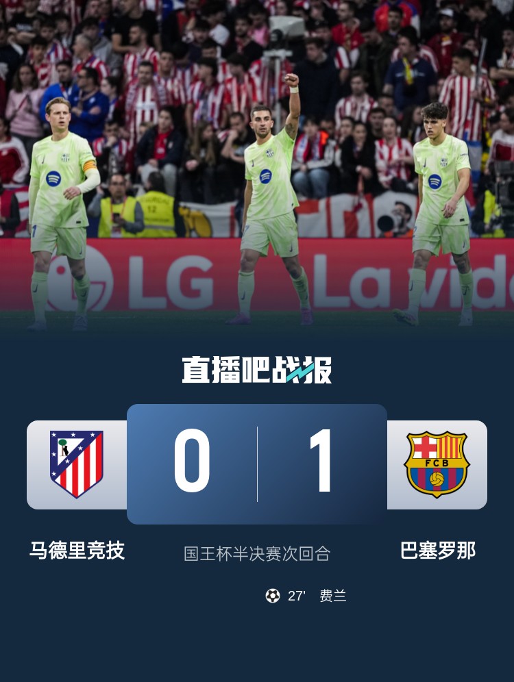 費(fèi)蘭制勝,巴薩客場1-0戰(zhàn)勝馬競,總比分5-4淘汰馬競進(jìn)軍國王杯決賽,將對(duì)陣皇馬。