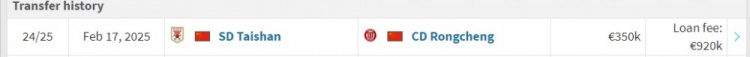 2月17日訊 《轉會市場》顯示,山東泰山隊歸化球員德爾加多租借加盟成都蓉城,租借費為92萬歐元,約合人民幣700萬元。