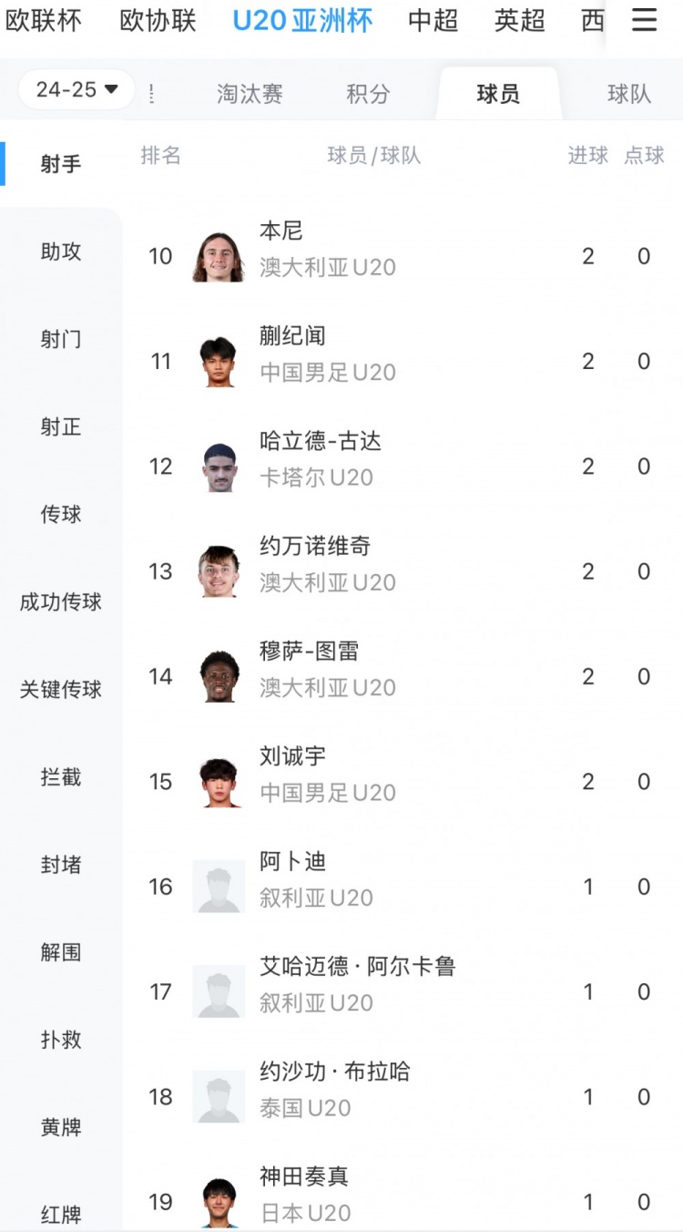 小組賽戰(zhàn)罷,國(guó)青3人躋身射手榜前10,球隊(duì)進(jìn)球數(shù)排前三