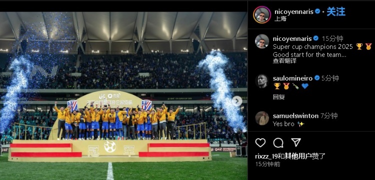 李可社媒:2025年超級杯奪冠,這是球隊的完美開局。