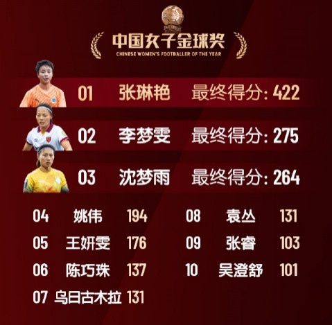 中國金帥獎、女子金球獎具體得分:于根偉、張琳艷均斷層領(lǐng)先