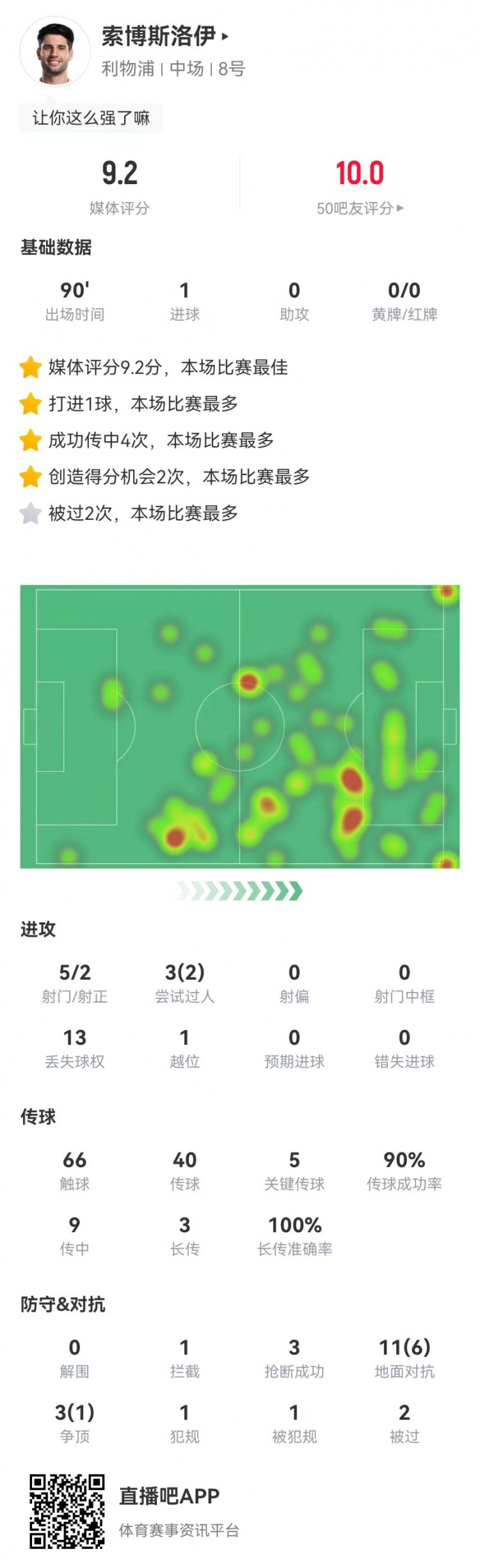 利物浦總比分3-1領(lǐng)先!索博斯洛伊單刀破門,布拉德利助攻 02月07日訊 聯(lián)賽杯半決賽,利物浦對陣熱刺。76分鐘,布拉德利助攻,索博斯洛伊單刀破門,利物浦總比分3-1領(lǐng)先熱刺。 2025/02/07 國米上次意甲單場凈輸3球,還是2019年5月1-4那不勒斯 2月7日訊 本輪意甲補賽,國米在客場0-3不敵佛羅倫薩。數(shù)據(jù)統(tǒng)計顯示,國米上次在意甲聯(lián)賽凈負3球,還是2019年5月19日1-4那不勒斯。 2025/02/07 12球8助攻!索博斯洛伊已為利物浦直接參與20球 2月7日訊 利物浦在本輪聯(lián)賽杯4-0領(lǐng)先熱刺,索博斯洛伊取得進球。數(shù)據(jù)統(tǒng)計顯示,索博斯洛伊已為利物浦直接參與20球,共計12球8助攻。 2025/02/07 521球!利物浦在聯(lián)賽杯進球數(shù)是歷史各隊最多 2月7日訊 利物浦在本輪聯(lián)賽杯次回合4-0領(lǐng)先熱刺,總比分4-1領(lǐng)先。數(shù)據(jù)統(tǒng)計顯示,利物浦在聯(lián)賽杯已經(jīng)打進521球,是歷史各隊最多。 2025/02/07 決賽要來了!范迪克頭球破門,麥卡利斯特助攻 02月07日訊 聯(lián)賽杯半決賽,利物浦對陣熱刺。80分鐘,麥卡利斯特開出角球,范迪克頭球破門,利物浦總比分4-1領(lǐng)先熱刺。 2025/02/07 費蘭30分鐘上演帽子戲法,為巴薩球員自08年埃托奧之后最快 2月7日訊 在本輪國王杯巴薩對陣瓦倫西亞的比賽中,費蘭用時半小時完成帽子戲法。據(jù)統(tǒng)計,這也是自08年埃托奧以來巴薩球員在各項賽事最快達成帽子戲法紀錄,埃托奧當時在西甲主場對陣阿爾梅里亞的比賽中28分鐘 2025/02/07 加克波本場數(shù)據(jù):1粒進球,4次關(guān)鍵傳球,5射2正 2月7日訊 在聯(lián)賽杯半決賽次回合利物浦對陣熱刺的比賽中,加克波表現(xiàn)不俗,以下為他在本場數(shù)據(jù):比賽時間82分鐘1粒進球5射2正2次過人1次成功1次中框1次失良機49次觸球4次關(guān)鍵傳球傳球成功率80.6% 2025/02/07 梅開二度!意甲官方:小基恩當選佛羅倫薩3-0國米全場最佳 2月7日訊 在意甲補賽佛羅倫薩3-0擊敗國米的比賽中,小基恩發(fā)揮出色。本場比賽小基恩梅開二度,5次射門4次射正,賽后他也當選意甲官方評選出的本場最佳球員。 2025/02/07 薩拉赫本場數(shù)據(jù):傳射建功+2關(guān)鍵傳球&3過人成功,評分8.9 2月7日訊 英聯(lián)杯半決賽次回合,利物浦對陣熱刺,薩拉赫首發(fā)出戰(zhàn),傳射建功,還送出2次關(guān)鍵傳球,3次過人成功,評分8.9。薩拉赫本場比賽數(shù)據(jù):進球1助攻1射門5射正4過人5過人成功3射偏1射中門框1丟失 2025/02/07 23球13助!拉菲尼亞本賽季各項賽事34次出場參與36球 2月7日訊 在本輪國王杯巴薩對陣瓦倫西亞的比賽中,拉菲尼亞已經(jīng)兩次送出助攻。據(jù)統(tǒng)計,拉菲尼亞本賽季各項賽事代表巴薩34次出場,已經(jīng)直接參與36粒進球,包括23球13助攻。 2025/02/07 范迪克自利物浦首秀以來打進26球,同期英超后衛(wèi)最多 2月7日訊 利物浦在本輪聯(lián)賽杯4-0領(lǐng)先熱刺,范迪克破門。數(shù)據(jù)統(tǒng)計顯示,自他在2018年1月完成利物浦首秀以來,范迪克各項賽事已經(jīng)打進26球,是同期英超后衛(wèi)最多。 2025/02/07 拉菲尼亞本場數(shù)據(jù):助攻雙響,3次關(guān)鍵傳球,2次射門未射正 2月7日訊 在本輪國王杯巴薩對陣瓦倫西亞的比賽中,拉菲尼亞助攻雙響,以下為他在本場數(shù)據(jù):比賽時間64分鐘2次助攻2射0正34次觸球3次關(guān)鍵傳球傳球成功率88.9%sofa評分7.6分 2025/02/07 佩德里本場1助攻+5成功長傳 10對抗9成功 4造犯規(guī)4搶斷 獲評8.2分 2月7日訊 巴薩在本輪國王杯5-0領(lǐng)先瓦倫西亞,佩德里本場數(shù)據(jù)如下:首發(fā)出戰(zhàn)64分鐘1助攻81觸球65傳球、60成功,成功率92%1關(guān)鍵傳球1傳中、0成功6長傳、5成功1創(chuàng)造重大機會1過人、1成功10 2025/02/07 全面!范迪克本場數(shù)據(jù):1進球1關(guān)鍵傳球2解圍1攔截,評分7.9 2月7日訊 英聯(lián)杯半決賽,利物浦4-0熱刺,范迪克首發(fā)出戰(zhàn),貢獻1粒進球,還有1次關(guān)鍵傳球,2次解圍,1次攔截,評分7.9。范迪克本場比賽數(shù)據(jù)如下:進球1助攻0射門1射正1丟失球權(quán)5觸球75傳球68關(guān) 2025/02/07 利物浦15次打進聯(lián)賽杯決賽創(chuàng)賽事紀錄,此前10次最終問鼎 2月7日訊 在聯(lián)賽杯半決賽次回合,利物浦4-0大勝熱刺晉級決賽。據(jù)統(tǒng)計,這是利物浦第15次打進聯(lián)賽杯決賽,是賽事歷史最多。在此前比賽中利物浦拿下10次冠軍(1981年、1982年、1983年、1984 2025/02/07 小基恩:佛羅倫薩給了我機會,我希望能夠回報俱樂部 2月7日訊 在剛剛結(jié)束的意甲補賽中,佛羅倫薩3-0大勝國米,梅開二度的小基恩在賽后接受了DAZN的采訪。感覺怎么樣?“我們?yōu)楸荣愖龊昧顺浞值臏蕚?,這都要歸功于一直支持我的隊友,謝謝他們?!蹦阏业搅艘粋€ 2025/02/07 碾壓!利物浦4-0熱刺數(shù)據(jù):射門26-5,射正10-0,控球率64%-36% 2月7日訊 英聯(lián)杯半決賽次回合,利物浦4-0熱刺,總比分4-1晉級決賽。全場比賽數(shù)據(jù)如下(利物浦在前):射門26-5射正10-0進球機會5-0控球率64%-36%傳球成功率87%-78%犯規(guī)5-8角球 2025/02/07 索博本場1球+5關(guān)鍵傳球+2造良機 3成功長傳3搶斷 9.2分全場最高 2月7日訊 利物浦在本輪聯(lián)賽杯4-0擊敗熱刺,索博斯洛伊本場數(shù)據(jù)如下:首發(fā)踢滿全場1球66觸球40傳球、36成功,成功率90%5關(guān)鍵傳球9傳中、4成功3長傳、3成功2創(chuàng)造重