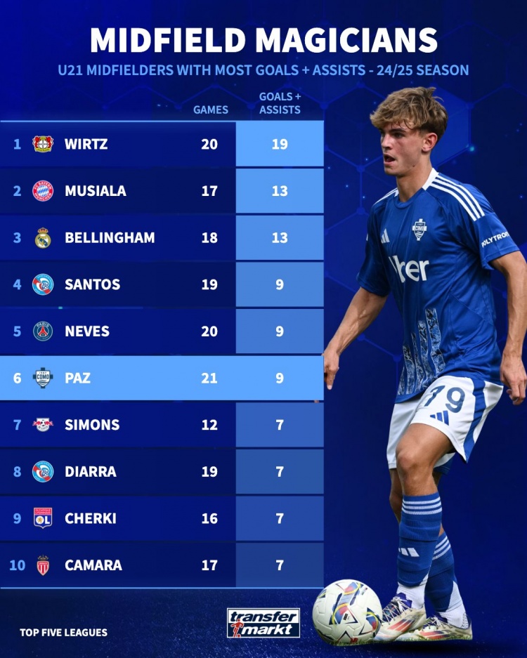 裁判專家談佩德里遭飛鏟:動作很粗魯,VAR本應(yīng)提醒裁判介入 2月7日訊 在巴薩客場5-0擊敗瓦倫西亞的國王杯1/4決賽中,巴薩中場佩德里遭遇對手吉拉蒙的飛鏟,賽后,西班牙塞爾電臺的裁判專家伊圖拉爾德談到了自己的看法。伊圖拉爾德認為吉拉蒙應(yīng)該因粗魯動作而被罰下, 2025/02/07 4場5球2助!小克魯伊維特當選英超1月最佳球員 2月7日訊 英超官方宣布,伯恩茅斯邊鋒賈斯汀-克魯伊維特當選英超1月最佳球員。小克魯伊維特1月份出戰(zhàn)4場英超比賽,打進5球,助攻2次。英超官方社媒曬出小克魯伊維特的獲獎海報和表現(xiàn)集錦,宣布他當選1月最 2025/02/07 電訊報:庫尼亞續(xù)約后是狼隊頂薪,合同中有6250萬鎊解約金條款 2月7日訊 《每日電訊報》報道,狼隊是在1月轉(zhuǎn)會窗口投入第二多的英超球隊,他們最成功的操作或許是確保了庫尼亞至少短期內(nèi)留隊,以助力球隊為保級而戰(zhàn)。庫尼亞關(guān)窗前與狼隊簽下一份為期4年半的新合同,其中包含 2025/02/07 法爾克:萊比錫今夏很可能出售西蒙斯,曼城曼聯(lián)利物浦均有意 2月7日訊 萊比錫在冬窗以低價正式買斷巴黎中場哈維-西蒙斯,名記法爾克透露了細節(jié)信息。該記者指出:“萊比錫很可能會在今夏出售哈維-西蒙斯,雙方簽下永久轉(zhuǎn)會合同有點令人驚訝。萊比錫一開始認為不會得到這樣 2025/02/07 馬雷斯卡:吉烏遭重傷可能缺席數(shù)周或數(shù)月 冬窗前已確定留恩昆庫 2月7日訊 北京時間2月9日凌晨4:00,英格蘭足總杯第4輪,切爾西將客戰(zhàn)布萊頓。賽前,藍軍主帥馬雷斯卡出席了新聞發(fā)布會,他談到了球隊目前的一些情況。關(guān)于杰克遜和吉烏的身體情況馬雷斯卡:“很遺憾,吉烏 2025/02/07 曼城推出Oasis聯(lián)名服飾:結(jié)合球員經(jīng)典時刻+綠洲樂隊歌曲 2月7日訊 曼城官方消息,俱樂部推出了與綠洲樂隊聯(lián)名的服飾,產(chǎn)品包括T恤、帽衫和漁夫帽等。兩款T恤的設(shè)計靈感來源于綠洲樂隊在上世紀90年代的音樂海報,并結(jié)合了曼城俱樂部歷史上的關(guān)鍵時刻,以及綠洲樂隊首 2025/02/07 同場建功!范迪克&加克波社媒慶祝晉級:溫布利,我們來了! 2月7日訊 利物浦在本輪聯(lián)賽杯4-0大勝熱刺,加克波和范迪克先后建功。第34分鐘,薩拉赫右路得球送出傳中,門前努涅斯倒鉤沒踢到,柯蒂斯-瓊斯漏球,后點加克波低射得手。第80分鐘,利物浦左側(cè)角球機會,麥 2025/02/07 約羅:如果訓(xùn)練中偷懶阿莫林會殺了你,他非常注重自律和守時 2月7日訊 近日在接受費迪南德采訪的時候約羅談到了主教練阿莫林,他表示阿莫林非常嚴格。約羅說:“訓(xùn)練的時候,我想說真的很難,但那是非常重要的。我們有很多訓(xùn)練,對主教練來說訓(xùn)練也很關(guān)鍵,因為訓(xùn)練就是為了 2025/02/07 斯洛特:莫頓將傷缺一段時間 希望和范迪克共事很長時間 2月7日訊 北京時間周日晚間的足總杯第4輪比賽,利物浦將前往客場挑戰(zhàn)普利茅斯。在本場比賽之前的新聞發(fā)布會上,紅軍主帥斯洛特談?wù)摿饲蜿牭膫鋺?zhàn)情況,同時也回答了一些球迷和媒體非常關(guān)心的問題。關(guān)于阿諾德昨天 2025/02/07 臥龍鳳雛!努涅斯英超生涯射門-進球轉(zhuǎn)化率11.1%,維爾納7.5% 2月7日訊 努涅斯和維爾納一向以浪費機會而聞名,whoscored也對比了兩人英超生涯的進球效率情況。努涅斯共計為利物浦在英超射門217次,打進24球,射門-進球轉(zhuǎn)化率11.1%。而維爾納為切爾西和熱 2025/02/07 希門尼斯并非米蘭史上首個墨西哥球員,首位是34年前的無名小卒 2月7日訊 圣地亞哥-希門尼斯是米蘭轉(zhuǎn)會市場上的鉆石尖端,他是米蘭近幾年最重磅的引援之一:這位來自費耶諾德的前鋒的轉(zhuǎn)會費為2850萬歐外加獎金,總費用達到3000萬歐。他讓南美的紅黑球迷燃起巨大興趣, 2025/02/07 五大聯(lián)賽U21中場參與進球:維爾茨19球最多,帕斯9球并列第四 2月7日訊 德國轉(zhuǎn)會市場統(tǒng)計了本賽季五大聯(lián)賽U21中場參與進球的數(shù)量,并列出榜單,維爾茨參與19球居首,尼科-帕斯參與9球排名并列第4位。本賽季五大聯(lián)賽U21中場參與進球榜:維爾茨(勒沃庫森)——19 2025/02/07 布萊頓主帥:0-7慘敗不能定義我們整個賽季 足總杯是奪冠的機會 2月7日訊 后天凌晨,布萊頓將迎來與切爾西的足總杯比賽,主帥赫爾澤勒出席了賽前發(fā)布會,談到了0-7慘敗森林以及球隊傷病等話題。傷員情況阿亞里、巴萊巴和埃斯圖皮尼安都出戰(zhàn)成疑,但三人中的兩人可能有機會登 2025/02/07 海港1-0領(lǐng)先申花!申花定位球丟球,加布里埃爾首秀搶射破門